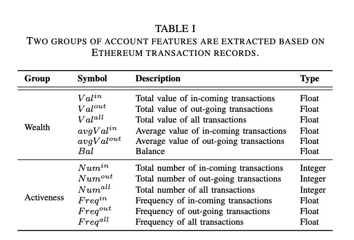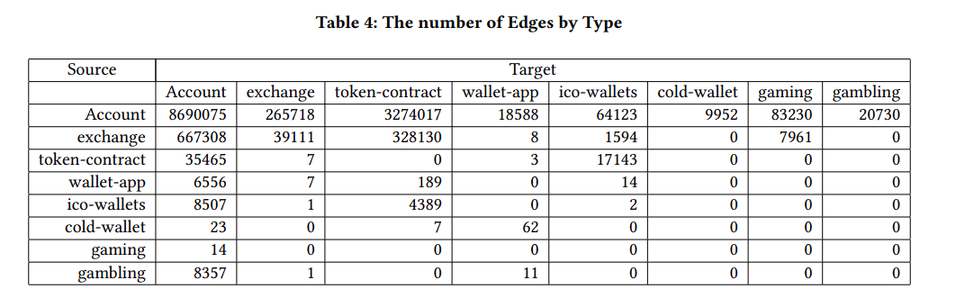 在本文 中,我们使用ICO事件和代币交易额作为特征来定义二方图,而实际上它可以是任何其他类型的智能合约,连接EoA节点。