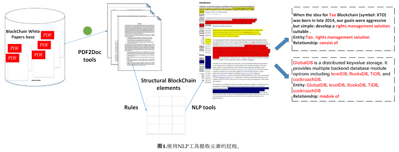 与传统的文本挖掘技术不同,区块链产品白皮书涵盖了特定的主题和实体。例如,区块链技术由共识机制、账户和交易行为、智能合约、密码学、分布式存储协议、跨链和交换、经济和激励、和治理技术等组成。