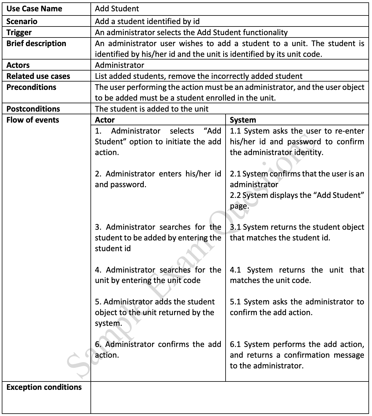 补全[use case scenario](#第一步:功能建模 - 用例场景)的 Exception conditions(including reasonable actions to be taken, 即要写系统怎么handle)9‘