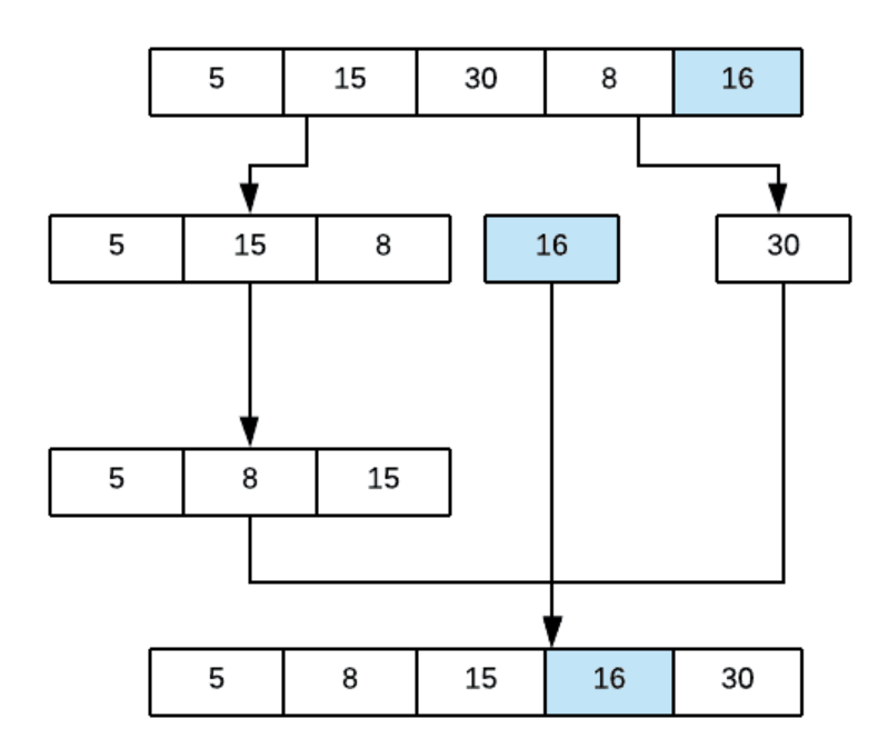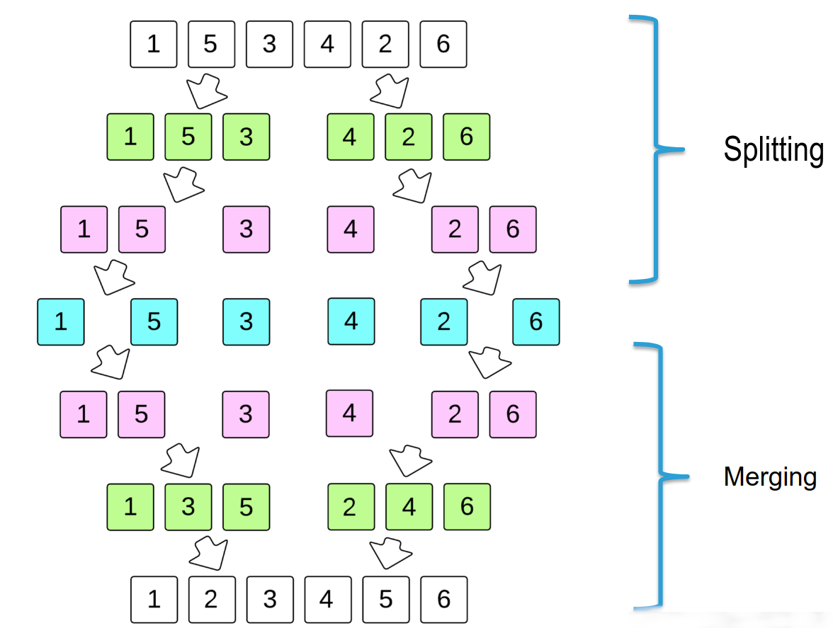 - Base case: A sublist with length of one (considered sorted) or with zero length