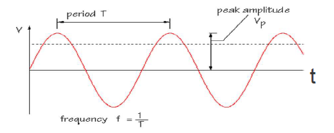 这里我们都使用正弦(sin)波。y = A * sin(f*2πX+φ) 波具有三个属性: