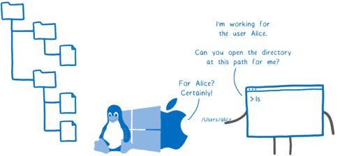 传统上,如果代码需要打开文件,则使用字符串(路径名)调用open。然后,操作系统会检查代码是否具有权限(基于启动程序的用户)。