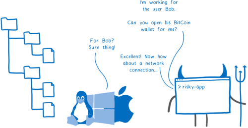 这意味着主机可以限制程序在逐个程序的基础上可以执行的操作。它不仅可以让程序代表用户执行操作,还可以在具有用户完全权限的情况下调用任何系统调用。