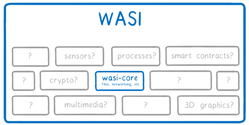 wasi-core将包含所有程序需要的基础。它将覆盖与POSIX相同的大部分内容,包括文件,网络连接,时钟和随机数。