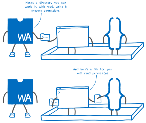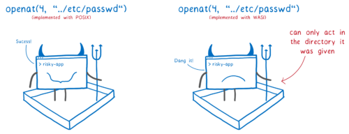 使用WASI,如果要调用需要访问文件的函数,则必须传入文件描述符,该描述符具有附加的权限。这可以用于文件本身,也可以用于包含文件的目录。