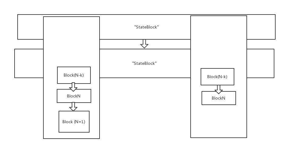 因此我们将创世区块到(N-k)号区块的内容整合为“状态区块”来保存内容。